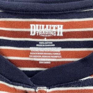 Duluth Trading Company Women's Navy Brown Longtail T Long Sleeve Henley Large