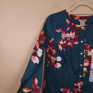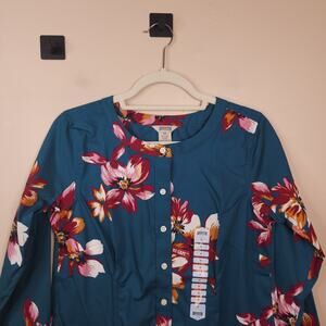 Duluth Trading Company Women's Wrinklefighter Tunic in Teal Floral Size XS