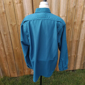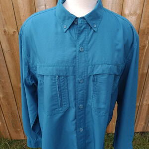 Duluth Trading Cool Plus Action Shirt Mens Size Large Blue Fishing Button Front