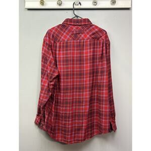 Duluth Trading Flannel Shirt Mens Large Red Plaid Button Front Workwear Outdoors