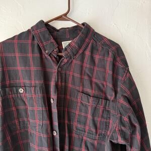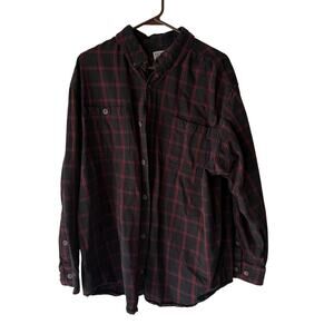 Duluth Trading Flannel Shirt Mens XL Black Red Plaid Button Up Long Sleeve Workwear