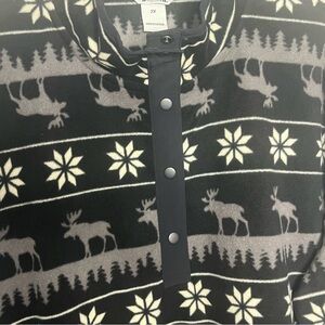 Duluth Trading Fleece 1/4 Snap Pullover Long Sleeve 2X Snow Moose Black Gray