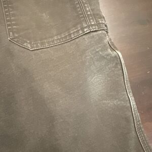 Pre owned in very good structural condition with some spots on them and an area around waist that has some damage. There is also some color variation throughout the pants. Please see last 3 photos showing the flaws.