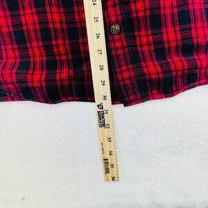 * Oxford Button Down Collar Red And Black Buffalo Plaid Flannel Shirt