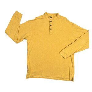 Duluth Trading Henley Shirt Mens L Yellow Waffle Knit Thermal Mock Neck 15021