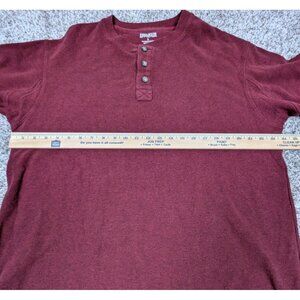 Duluth Trading Henley Shirt Mens Large Dark Red Cotton Stretch Knit Long Sleeve
