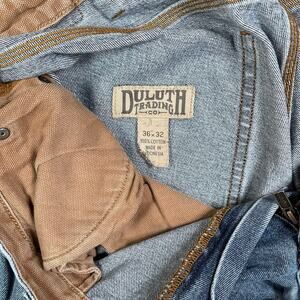 Duluth Trading Jeans Light Wash Work Wear Denim Straight Fit Tan Logo