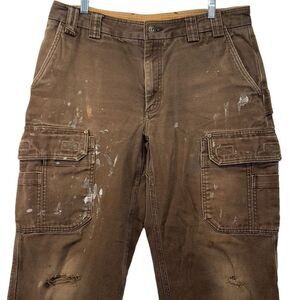 Duluth Trading Jeans Mens 36×32 Brown Carpenter Work Canvass worn workwear