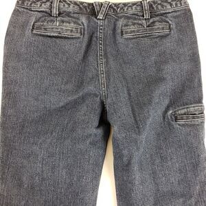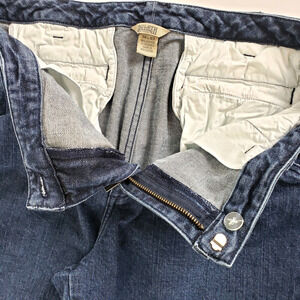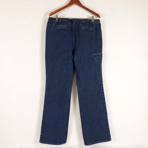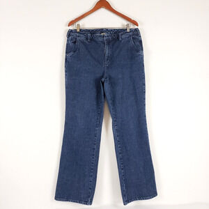 Duluth Trading Jeans Women SIZE 14 BootCut Blue Dark Wash Tough Work Wear 35x30