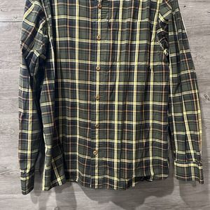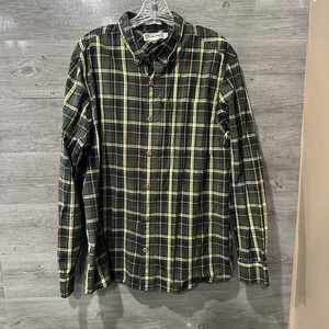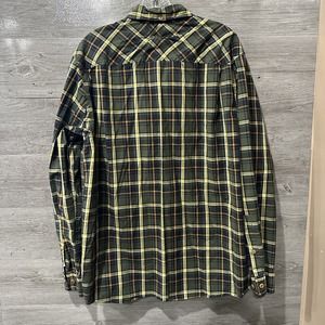 Duluth Trading Large Green Plaid Untucked Button Up Large Cotton Spandex Slim