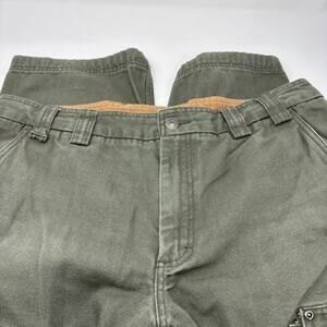 Duluth Trading Mens 38x32 Green Heavy Thick Canvas Cargo Work Pants