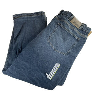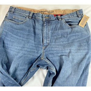 Duluth Trading Mens 44x30 Blue Jeans Flex Ballroom Flannel Lined Pants. Lined with red/black plaid flannel. Relaxed fit with straight legs and a little stretch. Medium wash blue denim. Originally $75 retail! Review photos for all details. NEW WITH TAGS!