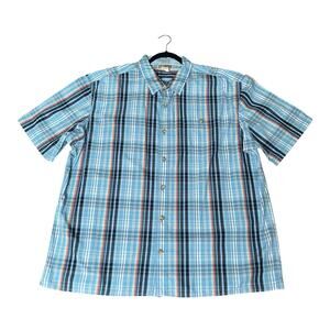 Duluth Trading Men's Point Collar Button-Down Shirt Blue Plaid Cotton Size 2XL