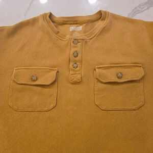 Duluth Trading Mens Ribbed Waffle Henley Mustard Yellow Size Large