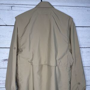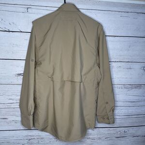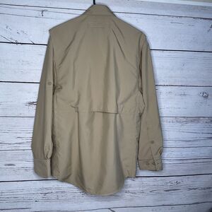 Duluth Trading Mens Small Shirt Solid Tan Vented Roll Tab Sleeves Fishing Tactic.