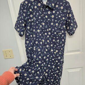 Duluth Trading Navy Daisy Heirloom Gardening 7" Short Coveralls Medium Romper