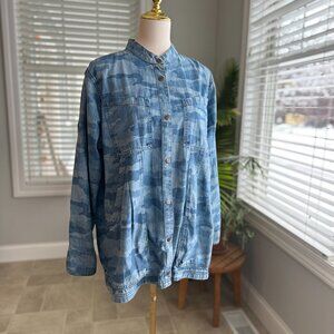 Duluth Trading Organic Cotton Chambray Blue Camo Garden Smock Sz XL
