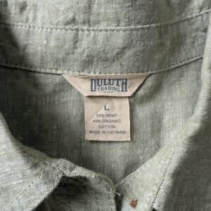 Duluth Trading Organic Cotton & Hemp Green Button Up Blouse Size L Pockets Zip L