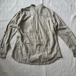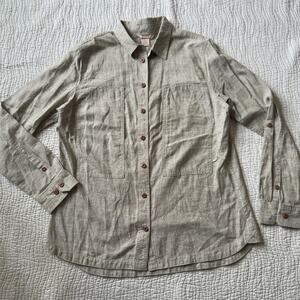 Duluth Trading Organic Cotton & Hemp Green Button Up Blouse Size L Pockets Zip