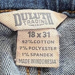 Duluth Trading plus size 18 bootcut jeans with stretch material and customized waistband. Ideal for comfortable daily wear with practical design features.