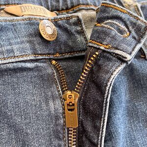 - Condition: Good pre-owned with waistband modification. Theses jeans have a section in the back of the waistband with elastic. I don't think it is original to the jeans, I think the last owner added it as you can see where it's stitched with white thread even on the outside of the waistband.