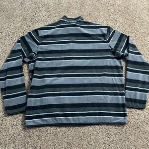 Duluth Trading Pullover Mens Large Gray Black Striped Fleece Quarter Zip Pocket