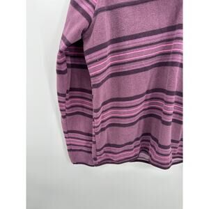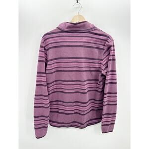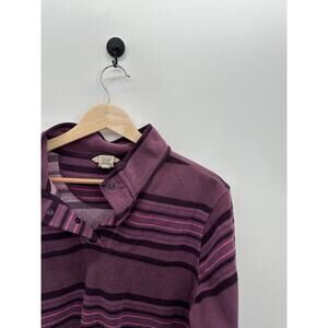 Duluth Trading Pullover Women Large Purple Striped Fleece Quarter Button Light