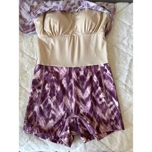 Duluth Trading Purple Tie Dye Suit Up Swim Sz 4 Built-in Bra One Piece Dress