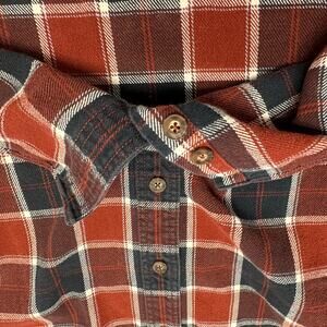 Duluth Trading Red Black Mens XLT Tall Flannel Cotton Plain Tartan Shacket Shirt