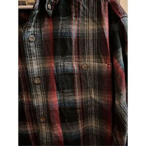 Duluth Trading Red & Gray Plaid Relaxed Fit Flannel Shirt sz M