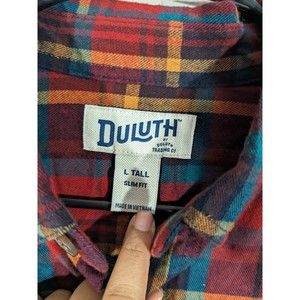 Duluth Trading Red Plaid Long Sleeve Cotton Flannel Slim Shirt Men Size L Tall