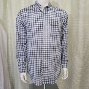 Duluth Trading Relaxed Fit Summer Weight Shirt Button Down Blue Plaid LS Men's M