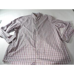 Duluth Trading Shirt 3XLT Wrinkle Fighter plaid Blue Orange Button Up Oxford Collared