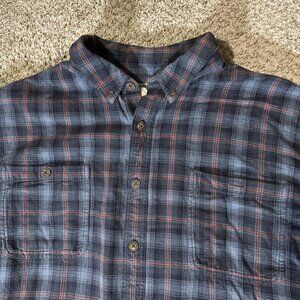 Duluth Trading Shirt Mens 3XL Tall Blue Plaid Button Down Long Sleeve Relaxed Fit