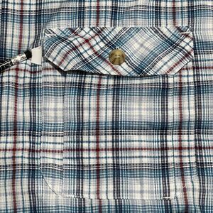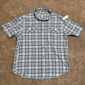 Duluth Trading Shirt Mens Large Ocean Blue Checked Western Style Short Sleeve