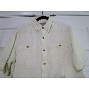 Duluth Trading Shirt Mens Medium Natural Beige Hemp Organic Cotton Short Sleeve