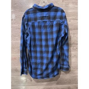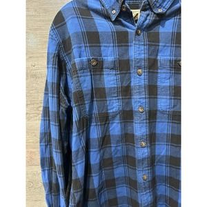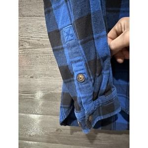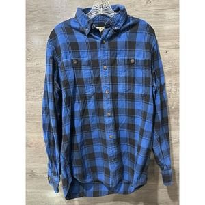 Duluth Trading Shirt Mens Medium Trim Fit Blue Black Plaid Button Down Flannel