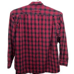 Duluth Trading Co mens long sleeve button down collared shirt size 2XL/Tall Heavyweight, red check flannel adjustable button cuffs.