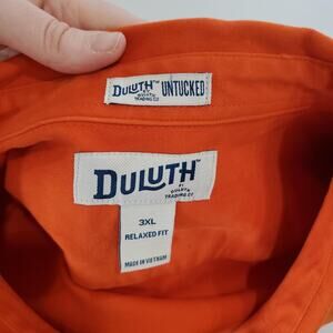 Visible branding: "DULUTH" neck label; "Duluth Untucked" inner tag