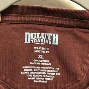 Duluth Trading Tee Shirt Relaxed Longtail Men’s XL Cotton Brownish Red Rust