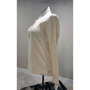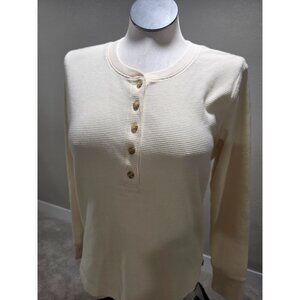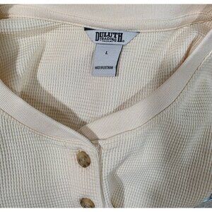 Duluth Trading Womens Waffle Knit Henley Long Sleeve Shirt L Beige