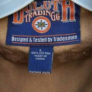 Duluth Trading fire hose canvas unlined snap up thigh length work coat Mens LRG