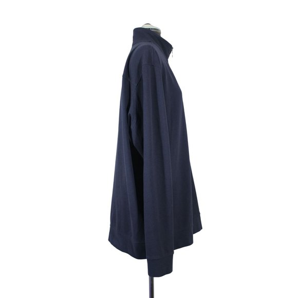 1/4 zip mock neck closure. Rib cuffs and hem.