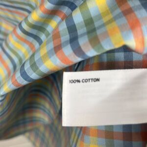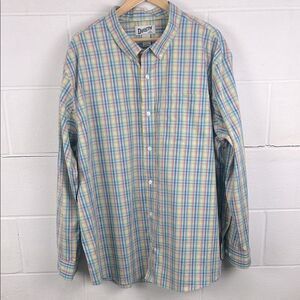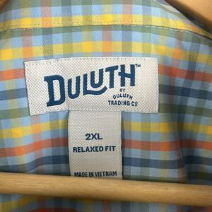 Duluth Trading Co men’s wrinklefighter relaxed fit long sleeve button down soft blue check shirt