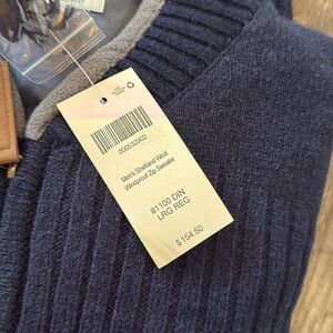 Duluth Trading Co Men's Shetland wool wind proof zip Navy Sweater Large