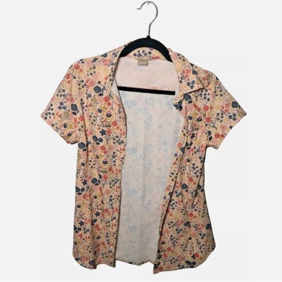 Duluth TradingXS Vented Shirt Women’s Pink Floral Short Sleeve Button Front