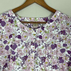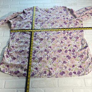 Duluth Tunic Top Womens 3X Lavender Floral Wrinklefighter Collarless Button Down