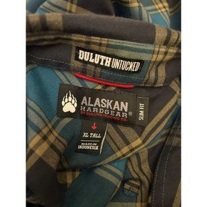 Duluth Untucked Men's Alaskan Hard Gear Green Plaid Shirt Size XL Tall Slim Fit