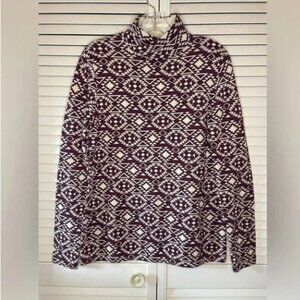 Duluth Women Mock Turtleneck Purple White Aztec Print Sweater S’no Sweat Medium