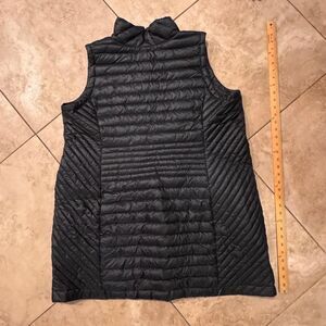 Women's Down Right Long Vest Duluth Black packable puffer vest with zipper and pockets new without tags no size tag, thought to be XL measurements shown. retail 150 on sale 104 get this for even less #outdoorstyle #puffer #vest #duluth